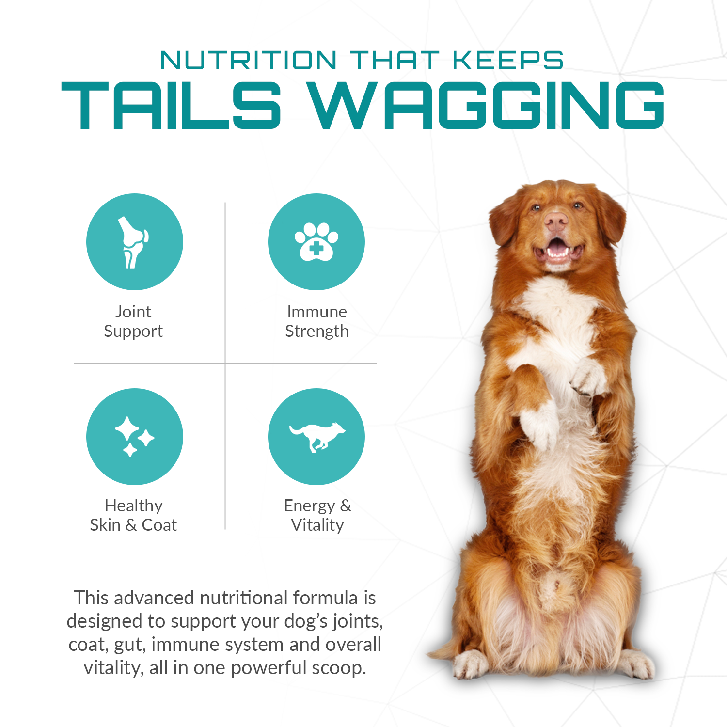 In addition to supporting joint, coat and digestive health, this supplement contributes to your dog’s overall wellness. With a balanced formula, it helps maintain healthy skin and a resilient immune system so you don’t need multiple products. Moreover, there are no artificial additives, so you can feel confident about what you’re feeding your companion. Regular use also encourages mobility, playfulness and a zest encourages mobility, playfulness and a zest for life.